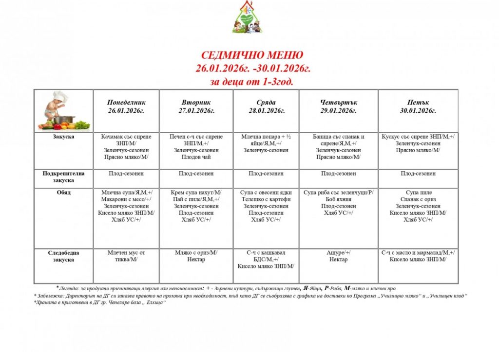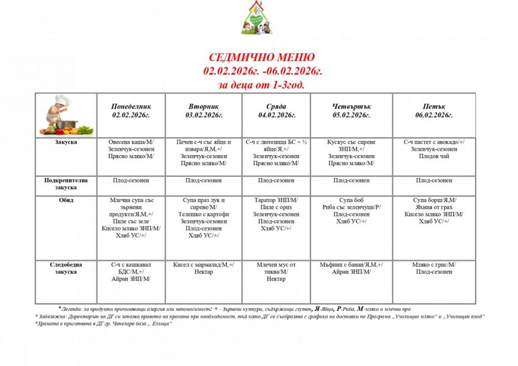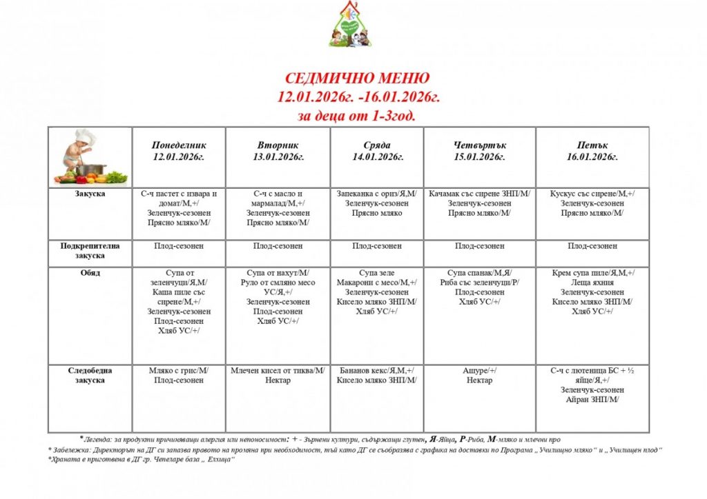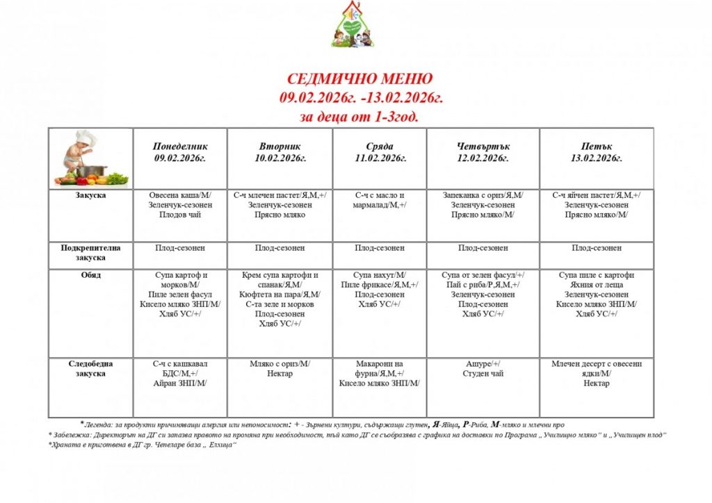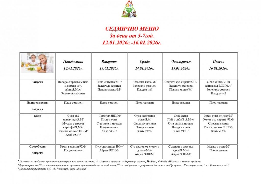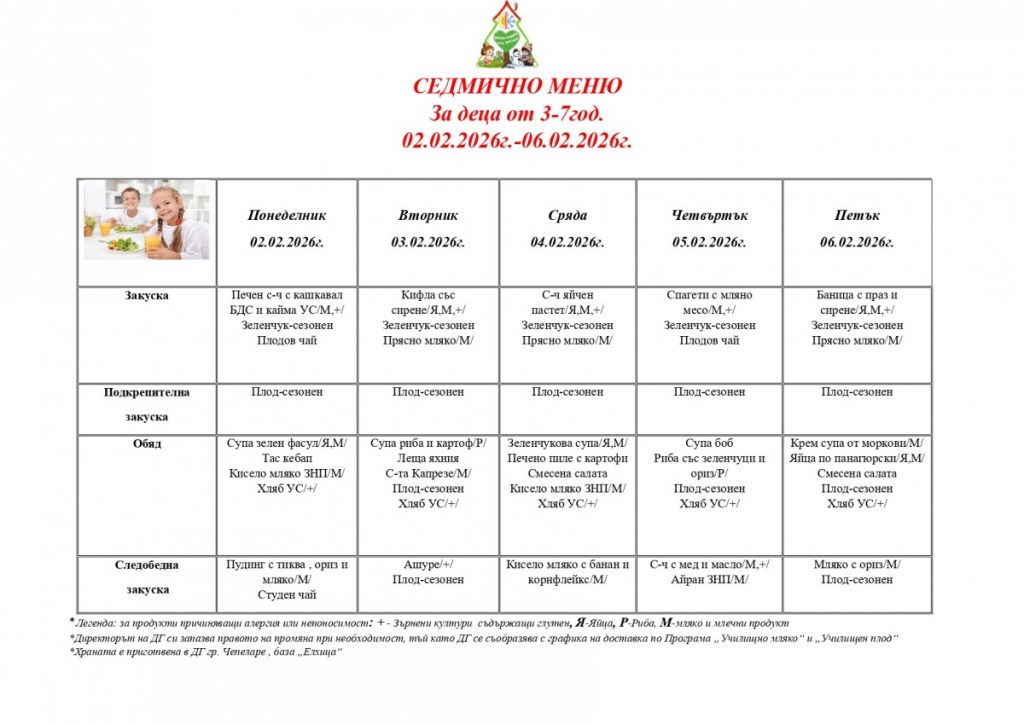 СЕДМИЧНО МЕНЮ